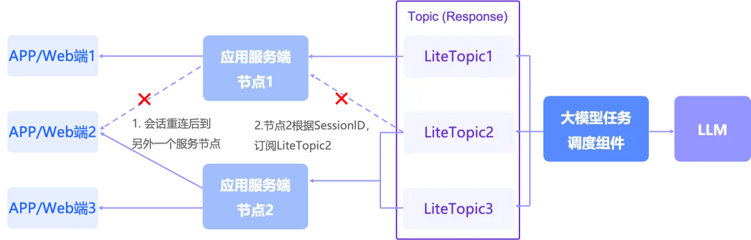 借助 LiteTopic 的自动创建、“一会话一通道”和动态订阅机制,系统可以为每个语音会话建立独立的响应通道。无论 LLM 推理耗时多久,消息都能**在专属通道中有序流转,避免多会话间的消息串扰。