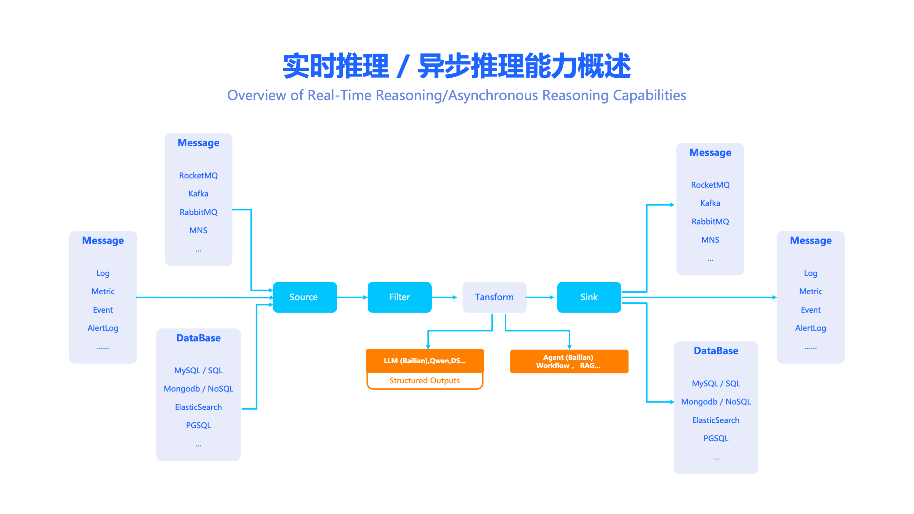 • 实时智能决策:将 AI 推理能力无缝融入数据处理流程,使系统能对实时数据进行智能分析与决策,极大提升业务的智能化水平。